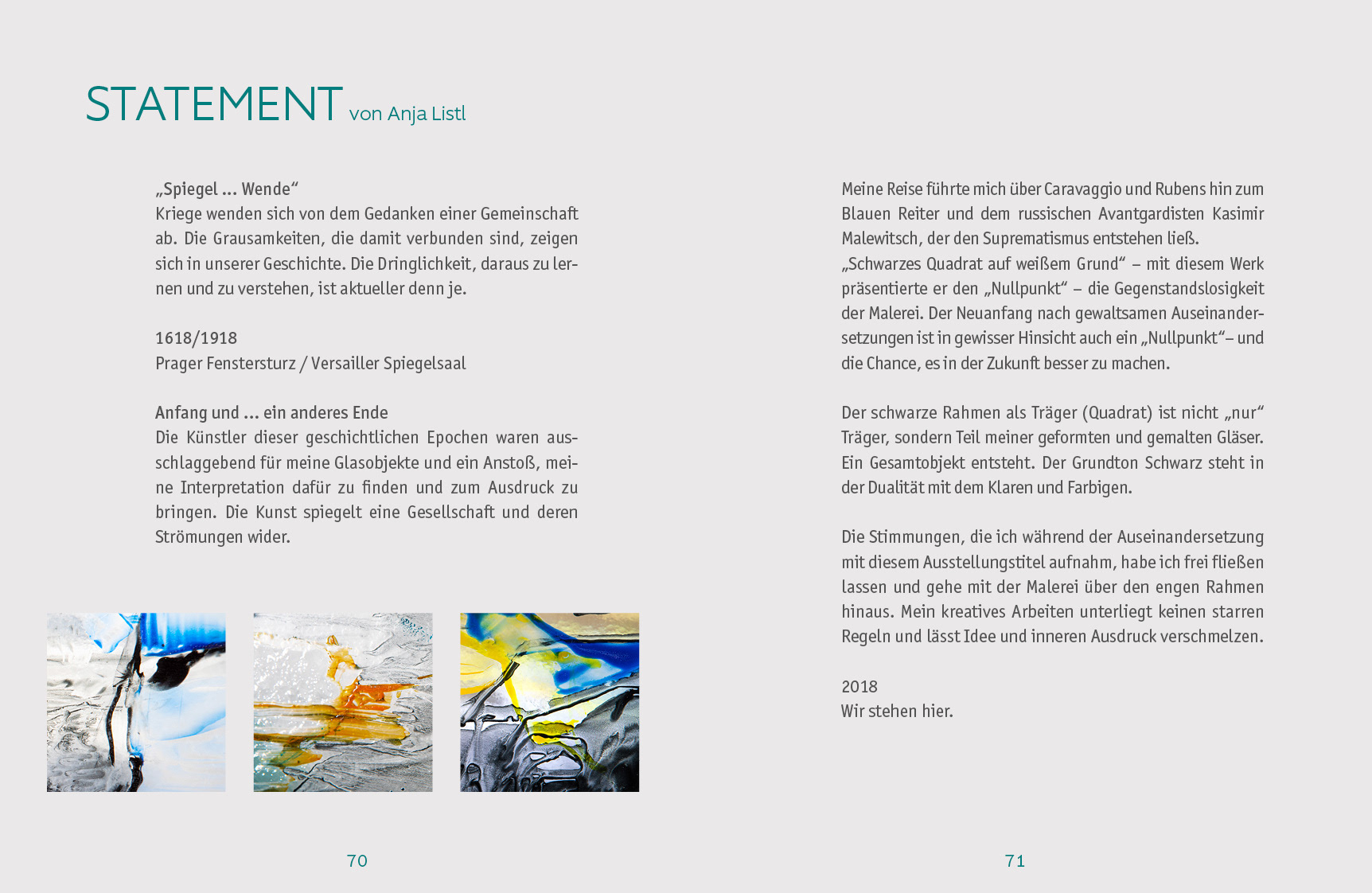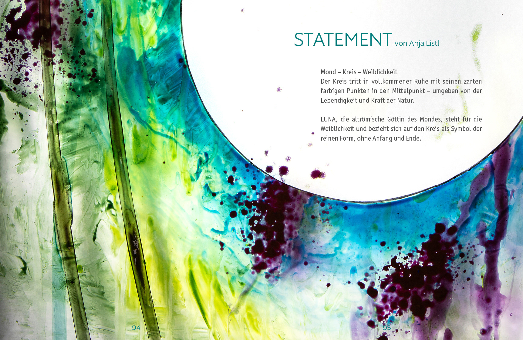 Die Künstlerin Anja Listl fertigt einzigartige Glaskunst: Farben und Glas verschmelzen zu von Licht durchfluteten Werken, die aus einem kreativen Impuls entstehen. Eng verbunden ist Anja Listl mit ihrer Heimatstadt Passau. Im Buch werden nicht nur ihre Werke, sondern auch Passau als Glasstadt und die Lieblingsorte der Künstlerin in einer Fotoserie vorgestellt.